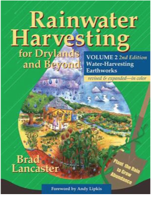 Rainwater Harvesting for Drylands and Beyond, Volume 2, 2nd Edition is a how-to guide enabling you to “plant the rain” by creating water-harvesting “earthworks” or “rain gardens.” Earthworks are simple, inexpensive strategies and landforms that passively harvest multiple sources of free on-site water including rainfall, stormwater runoff, air conditioning condensate, and greywater within “living tanks” of soil and vegetation. The plants then pump the water back out in the form of beauty, food, shelter, wildlife habitat, timber and forage, while controlling erosion, reducing down-stream flooding, dropping utility costs, increasing soil fertility, enhancing the soil carbon sponge, and improving water and air quality.